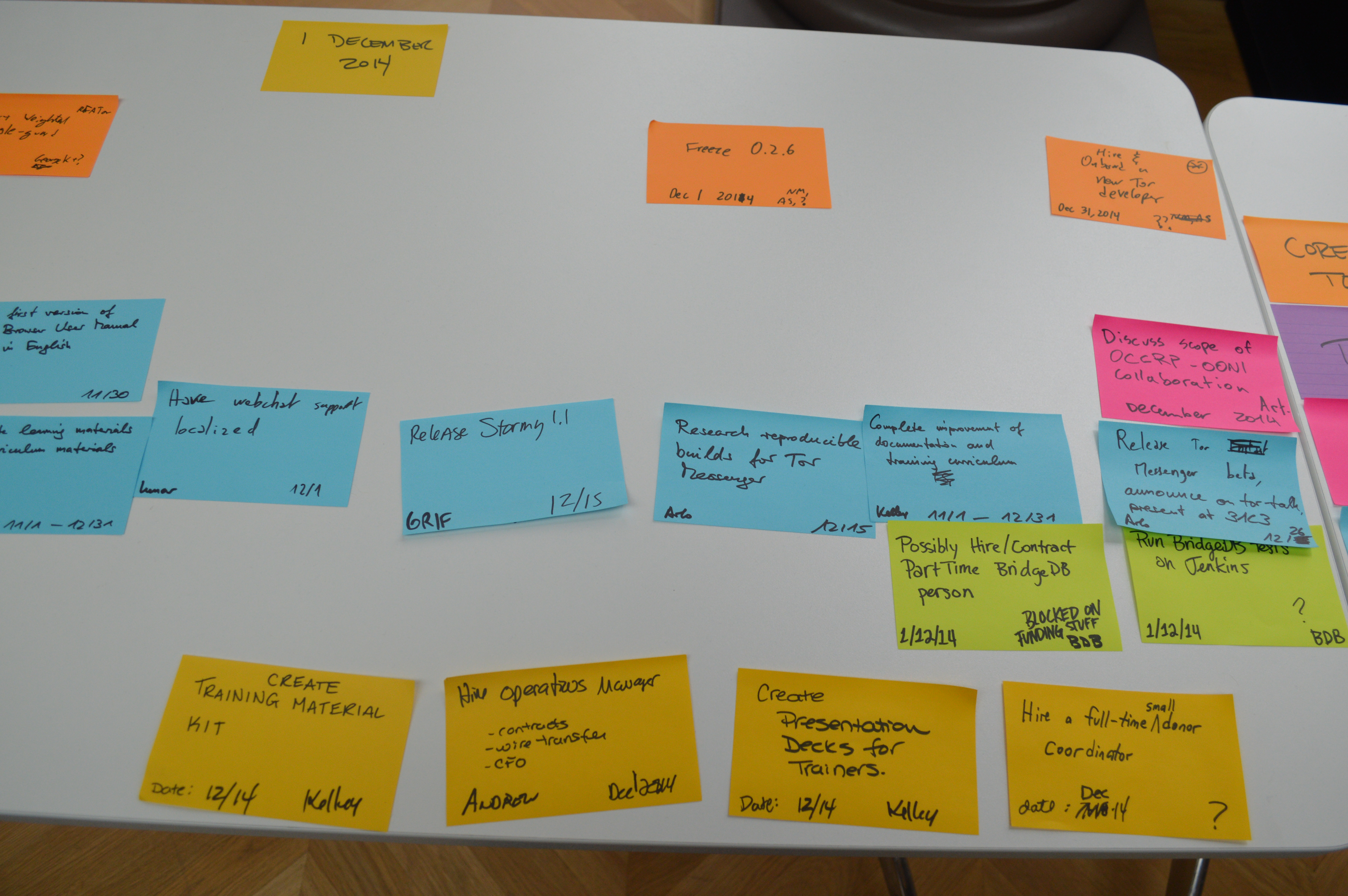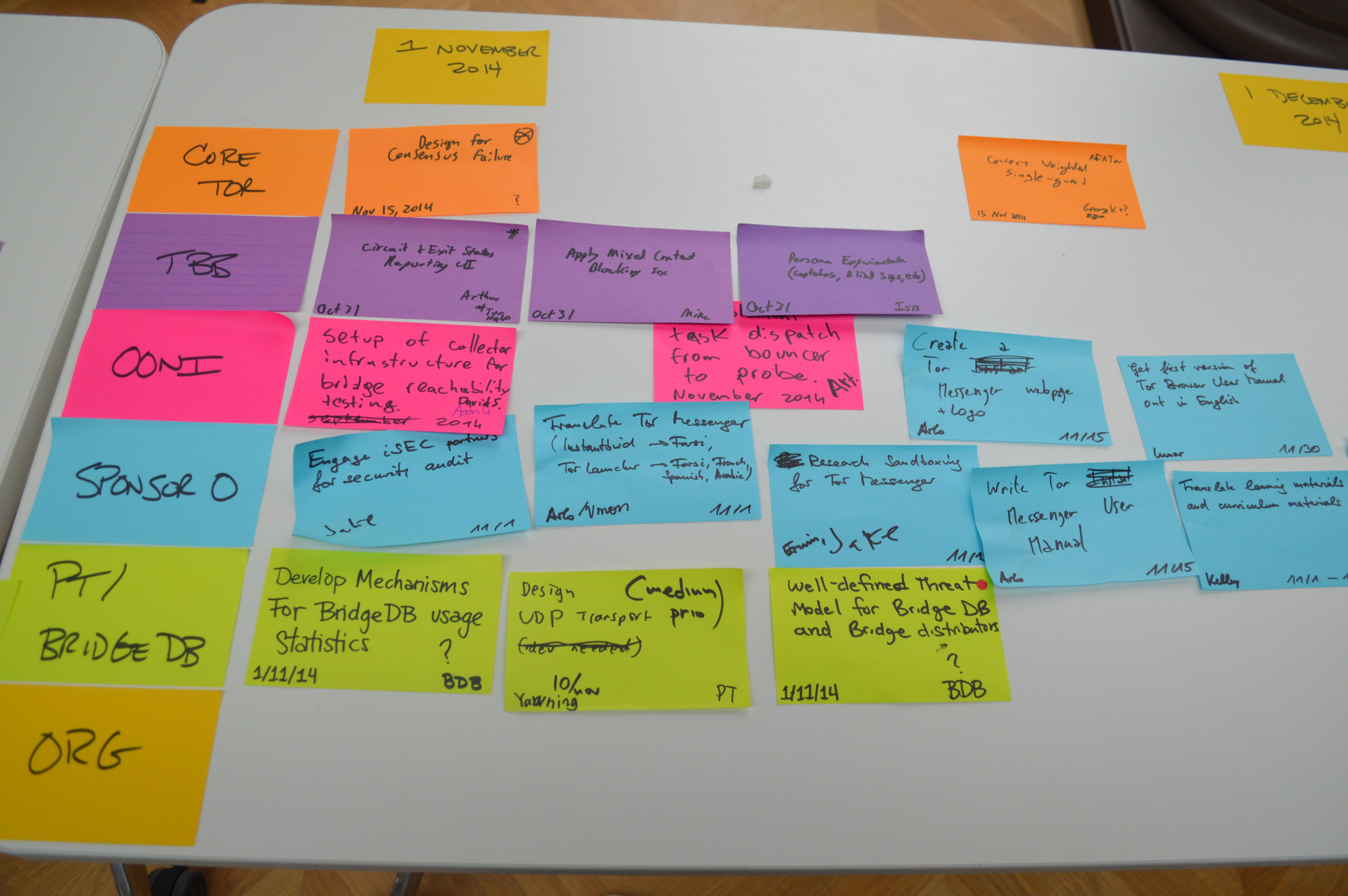 - Possibly hire/contract part-time BridgeDB person; blocked on funding stuff, December 1, 2014, ?