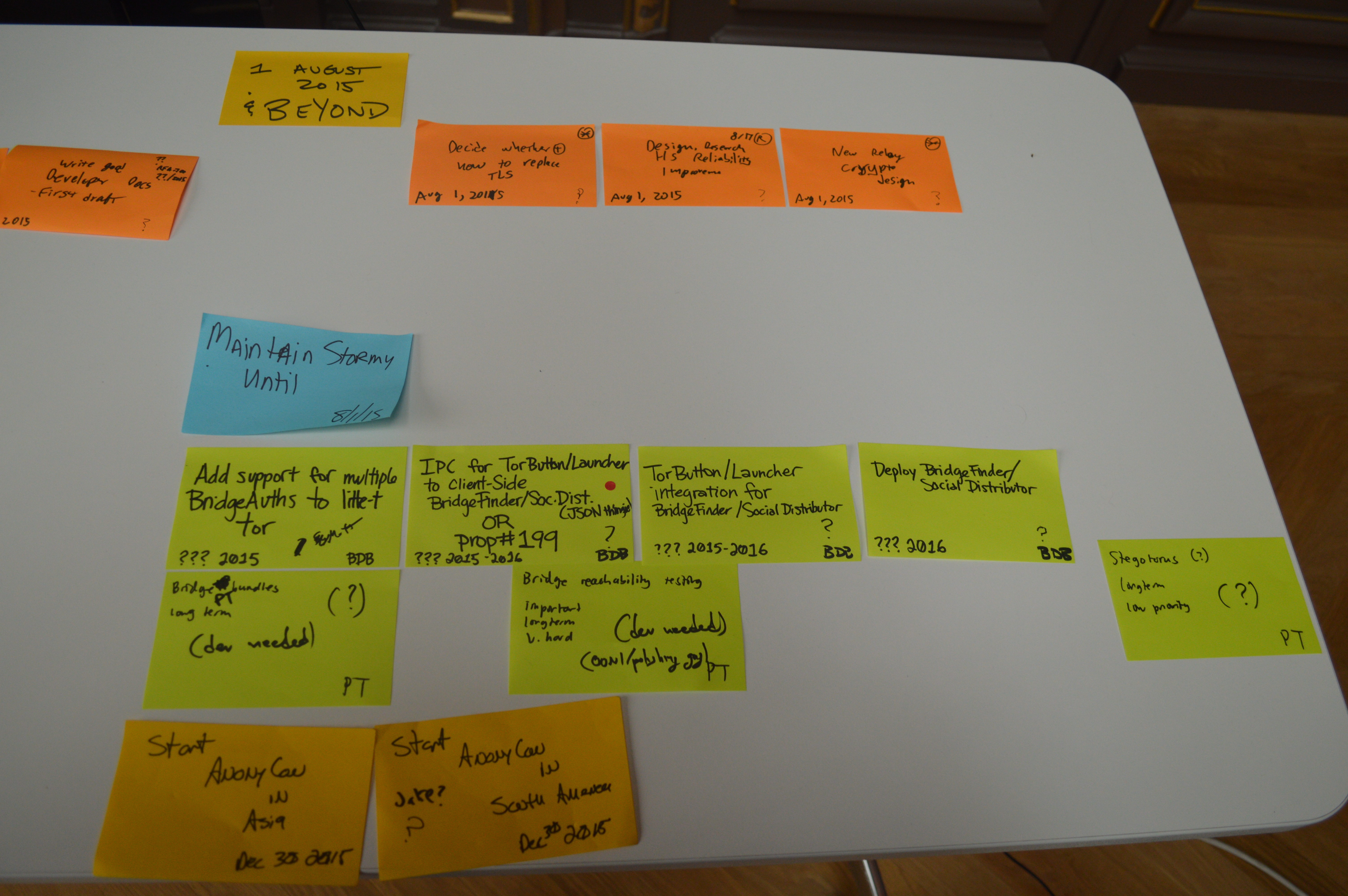 - Get David Goulet committed to hidden-service development, and Yawning committed to pluggable transport development.